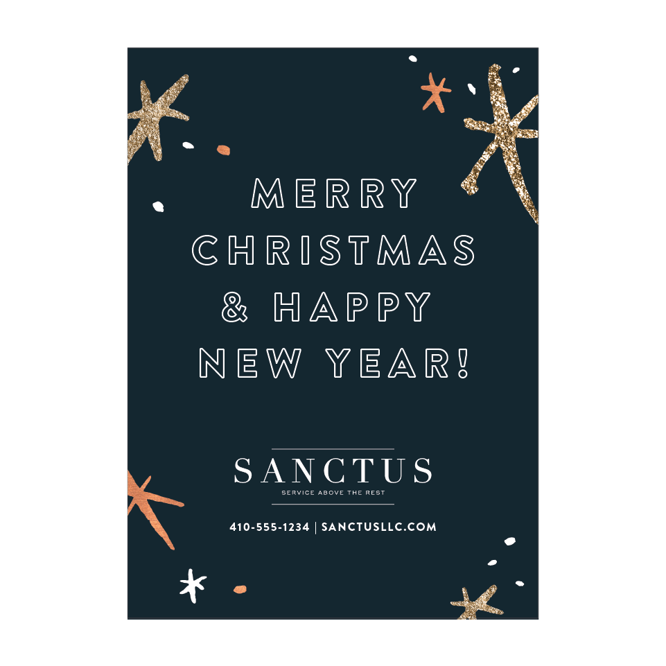 A handlettered greeting and faux foil and glitter bring the sparkle to this fun non-photo holiday card.