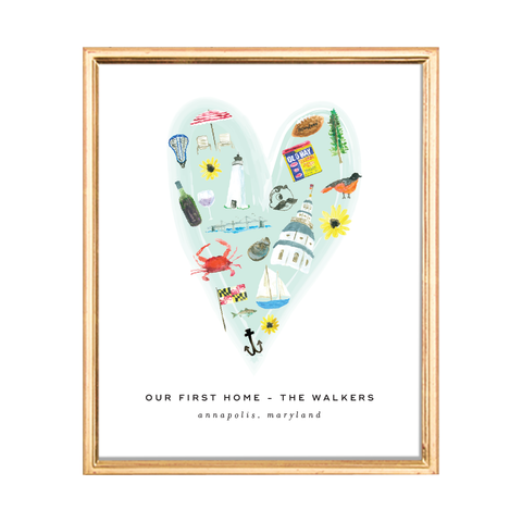 All of our favorite Annapolis handdrawn illustrations from "Maryland Illustrated" come together in this art print, which can be customized for the perfect keepsake. Home is where the heart is, and it's by the bay.