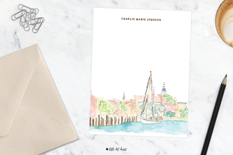 Personalized notecards featuring the heart of downtown Annapolis in watercolor.