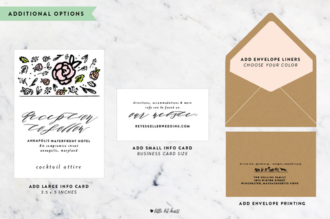 For a custom quote (additional options, custom design, letterpress printing, etc) - please email us at hello@littlebitheart.com