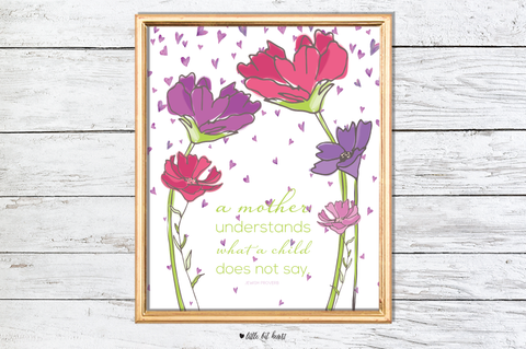 "A mother understands what a child does not say"- this sweet Jewish proverb paired with florals is the perfect print for any mom.