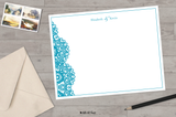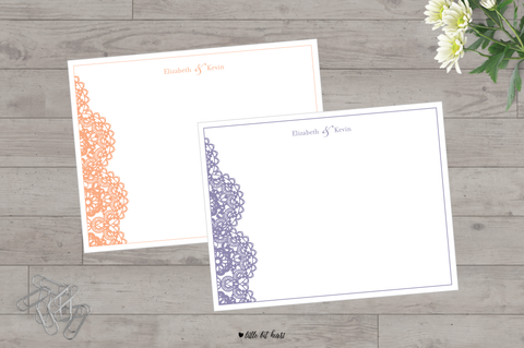 5.5 x 4.25 flat cards, printed on bright white cover stock. Comes with matching bright white envelopes.