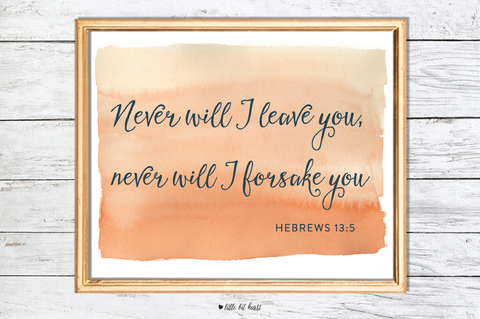 Put this where you'll see it each day- Hebrews 13:5, "Never will I leave you, never will I forsake you."