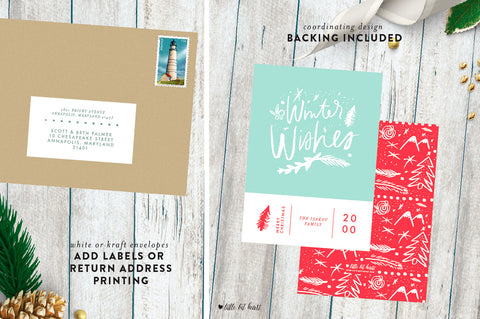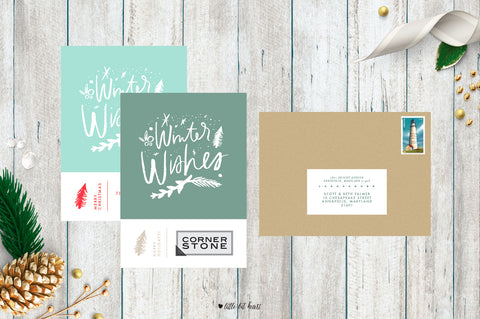Featuring handdrawn winter illustrations and a handlettered greeting, this card is the perfect way to send winter wishes from your family or company.